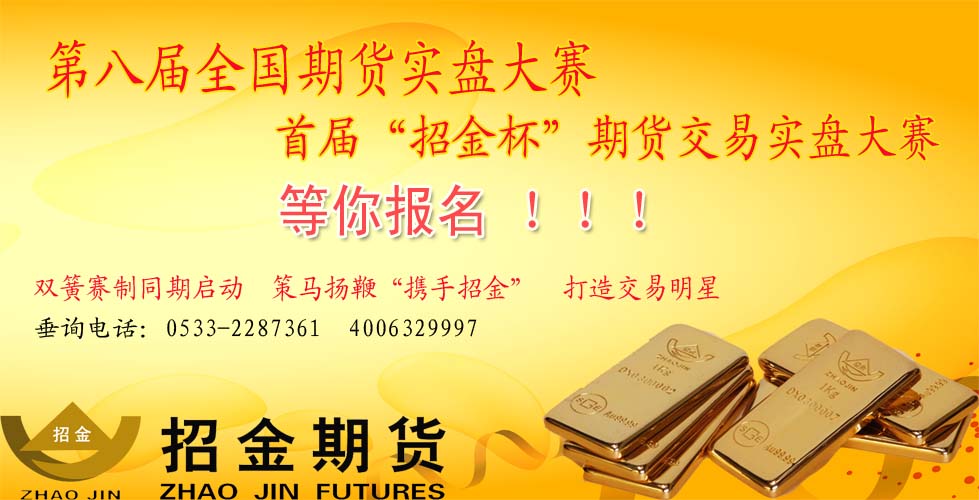 期貨日?qǐng)?bào)主辦的第八屆全國期貨實(shí)盤交易大賽3月28日開賽,招金期貨作為大賽指定的期貨通道平臺(tái),開戶即可免費(fèi)參加比賽,現(xiàn)有招金客戶可直接參賽。各種資金規(guī)模,各種交易方法給您充分展示的舞臺(tái)。首屆“招金杯”期貨交易實(shí)盤大賽也同步開賽。兩賽聯(lián)袂,一次報(bào)名即可同時(shí)參加,比賽實(shí)行雙重獎(jiǎng)金制度,全國實(shí)盤大賽總獎(jiǎng)金130萬,招金期貨總獎(jiǎng)金150克黃金!一次參賽,雙份獎(jiǎng)金,低門檻投入,高額回報(bào)。招金期貨將竭誠為參賽者提供報(bào)名、咨詢、指導(dǎo)等各項(xiàng)服務(wù),幫您實(shí)現(xiàn)冠軍夢(mèng),歡迎各位投資者積極參與!