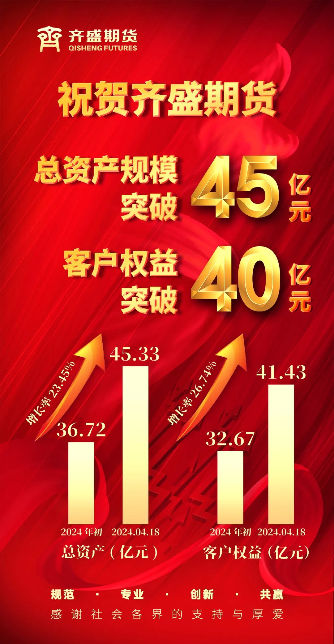提升服務(wù)實體經(jīng)濟能力讓打勝仗成為一種信仰!總資產(chǎn)規(guī)模突破45億元!客戶權(quán)益突破40億元!