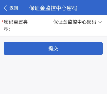 3.密碼重置類(lèi)型選擇“保證金監(jiān)控中心密碼”