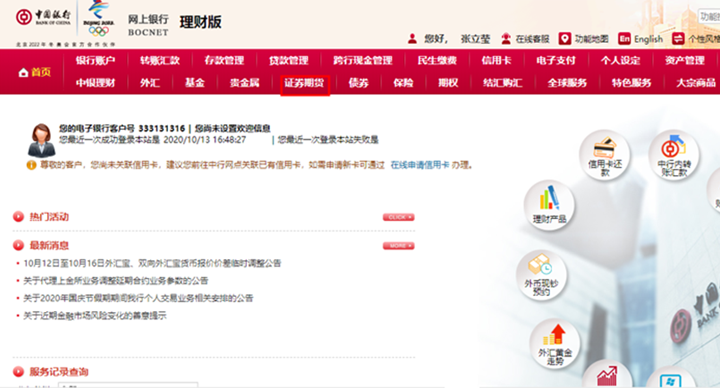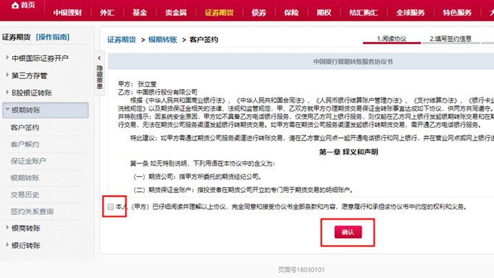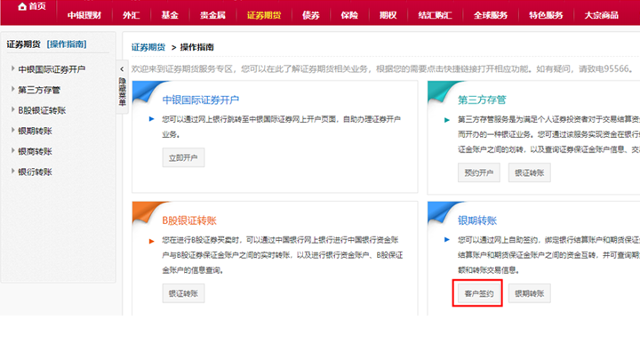 點擊證券期貨→銀期轉(zhuǎn)賬→客戶簽約