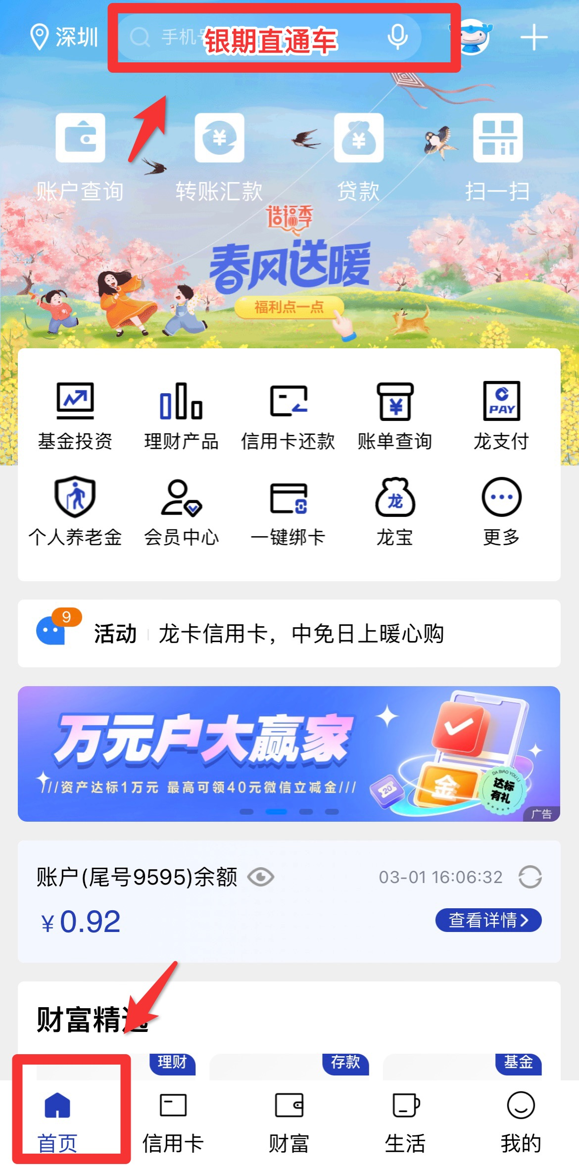 以手機銀行為例,選擇“投資管理”-“銀期直通車“。