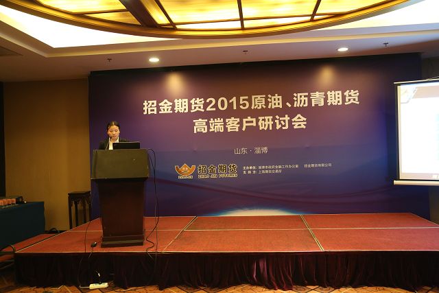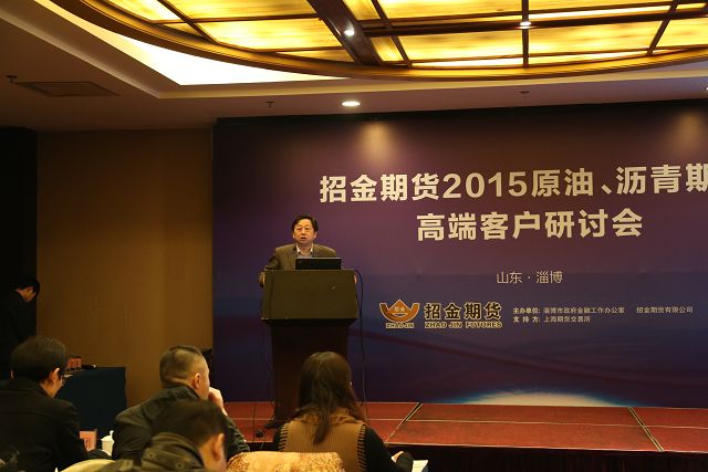 2015年1月10日上午9點,招金期貨2015原油、瀝青期貨高端客戶研討會在山東淄博藍海國際酒店成功舉辦。本次會議由淄博市政府金融工作辦公室和招金期貨有限公司主辦,上海期貨交易所支持,淄博市政府金融工作辦公室領(lǐng)導和匯豐石化、金晶集團、道恩集團、日升燃料等企業(yè)領(lǐng)導出席了會議,會議期間中國石油和化學工業(yè)聯(lián)合會信息與市場部副主任祝昉,招金期貨有限公司研究院李敏,山東清源集團副總王芹分別就《2015原油供需價格再平衡與趨勢預測》、《原油、瀝青期貨上市及意義》、《宏觀經(jīng)濟下的期現(xiàn)套?!返确矫孀隽搜葜v,會議取得圓滿成功。