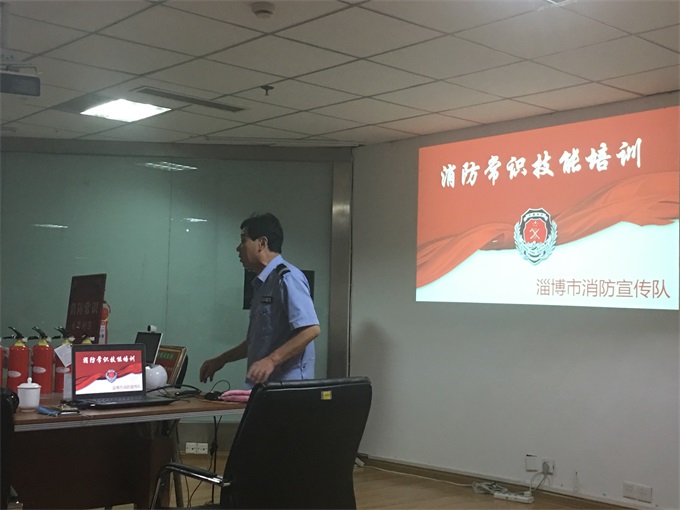 2018年6月12日15:15綜合部組織總部員工在總部大會議室參加了張店消防大隊陳隊及全國消防模范孫曉云主任的消防培訓,本次培訓的主題是:“讓消防走進心中,讓責任變成行動”。