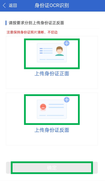 2..身份證OCR:上傳身份證正、反面,點(diǎn)擊【確定】