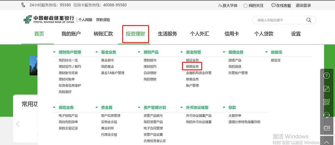 登錄郵政儲蓄銀行網(wǎng)銀-投資理財-銀期業(yè)務(wù)